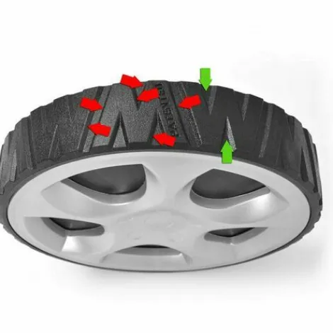 Roue Avant 360 La Roue Avant Rend La Tondeuse Extremement Maniable, Facilite La Tonte Autour Des Arbustes Et Des Arbustes Et Est Particulierement Pratique Pour Les Pelouses Tortueuses.