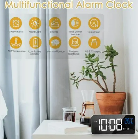 【Design Moderne Et Surface De Miroir】 Le Reveil Led Moderne A Un Ecran Miroir Et Est Esthetiquement Agreable Avec Son Design Elegant, Mais Peut Egalement Etre Utilise Comme Miroir Si Necessaire. Une Horloge De Table Parfaite Pour Le Salon, La Chambre Et Le Bureau.