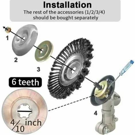 La Lame De Coupe Indestructible Est Egalement Concue Pour Une Installation Facile, L’Alesage Est Universel De 1 Pouce Pour La Plupart Des Coupe-Bordures Et La Taille De La Brosse Metallique Est De 6 Pouces De Diametre Pour Satisfaire La Plupart De Vos Besoins.
