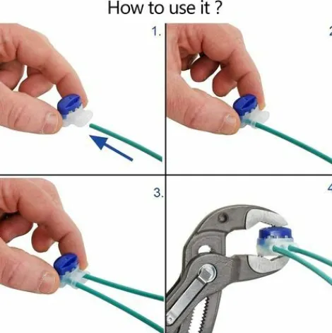 【Facile A Installer】 Le Connecteur Du Cable De La Tondeuse Peut Etre Facilement Connecte Au Cable De Limite. Aucune Soudure Ou Denudage N’Est Necessaire, Inserez Simplement Le Fil Dans Le Connecteur EÉlectrique Flexible, Puis Utilisez L’Outil De Sertissage Pour Serrer Le Couvercle Bleu.